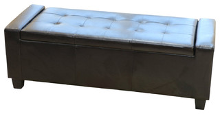 Ottomans - m FREE DELIVERY possible on eligible purchases. Shop for Christopher Knight Home Guernsey Black Bonded Leather Storage. M: Best Selling Guernsey Black Leather Storage Ottoman. For people with children, this piece can also serve as a toy chest.